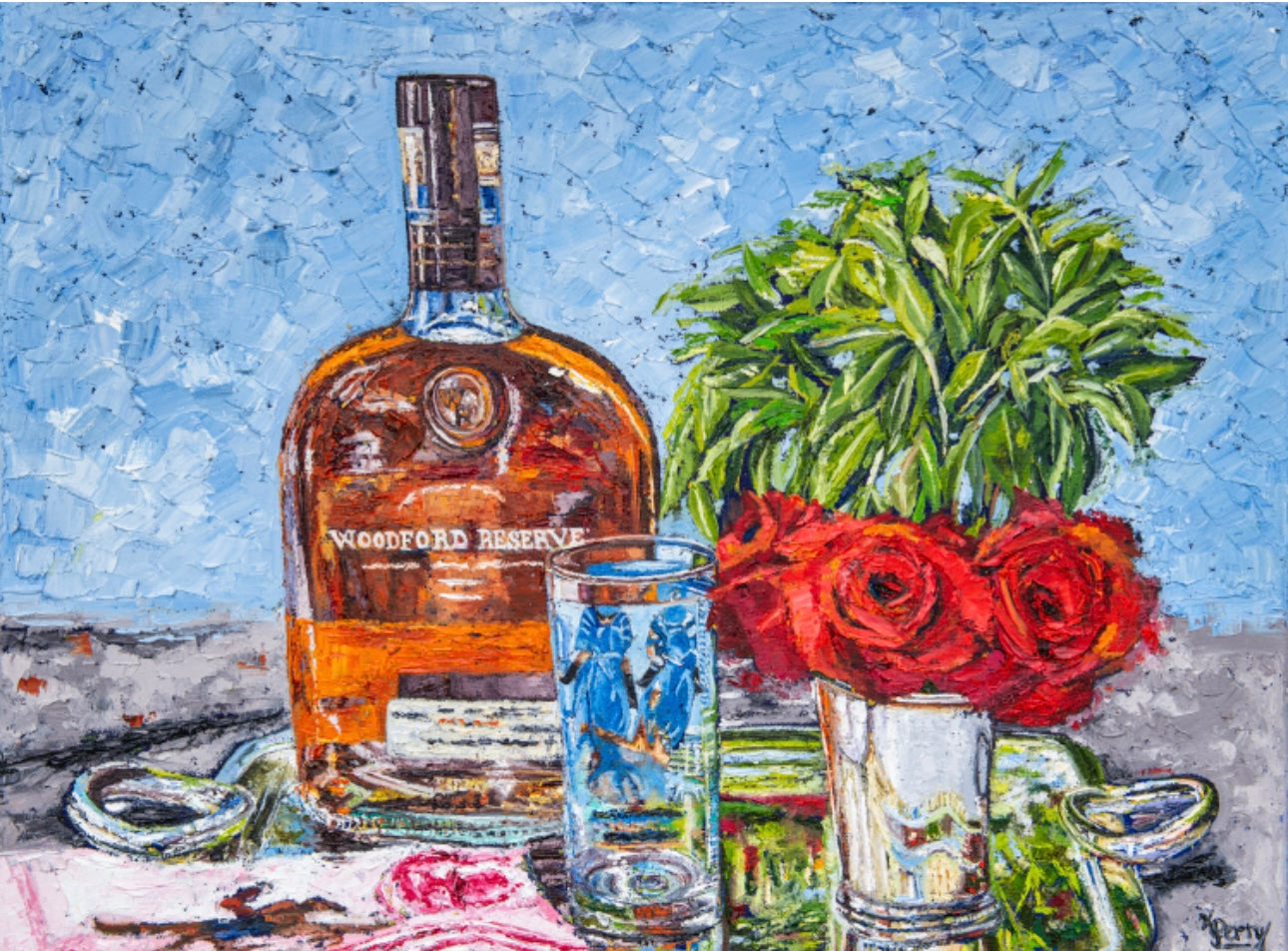 "Woodford & The Tradition" bourbon print is one of many prints that display unique, artistic representations celebrating the racing season of the highly anticipated Kentucky Derby. Kim captures the artistry, the craftsmanship, and the legacy of each bottle by the unique palette knife technique using bold, intense colors.