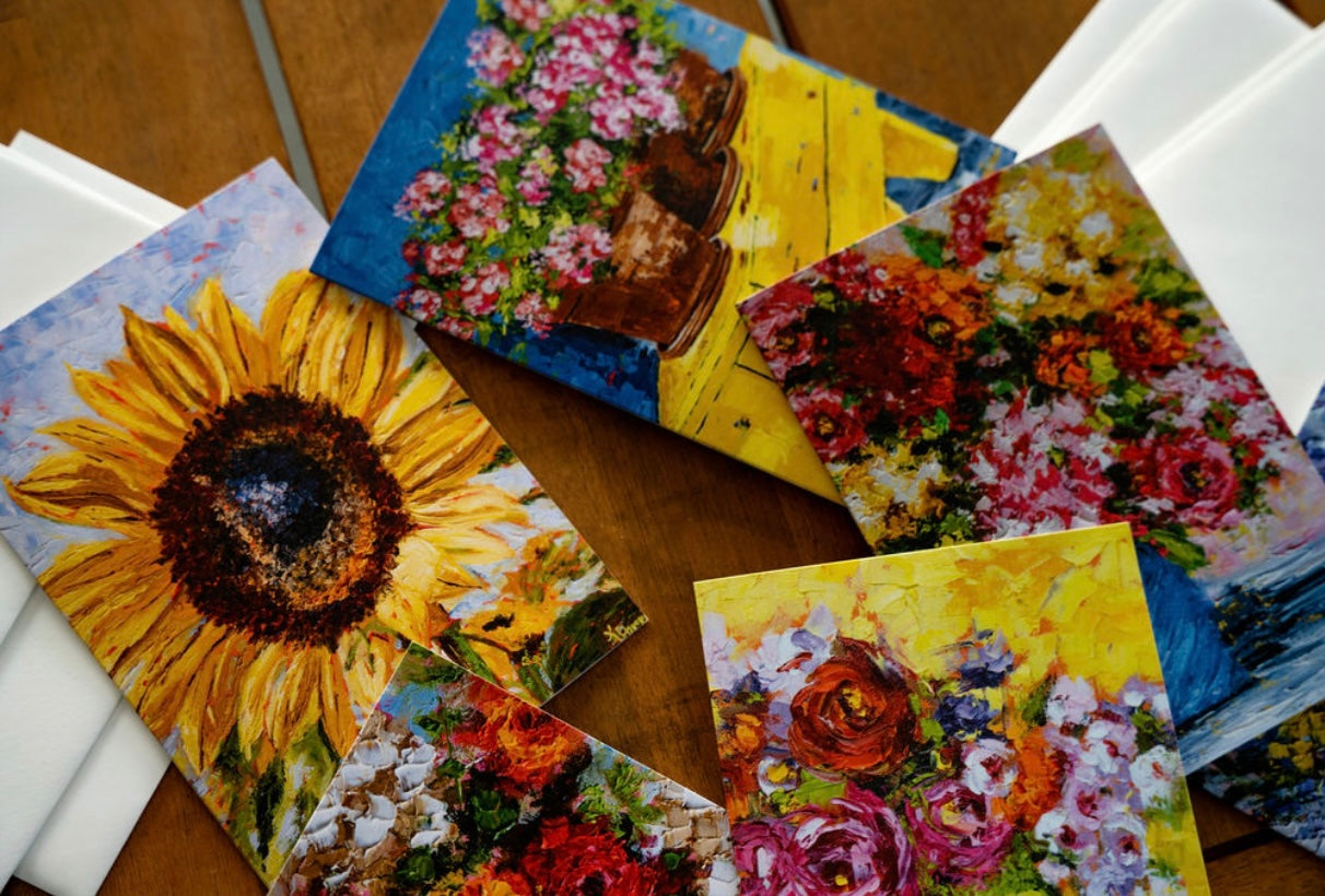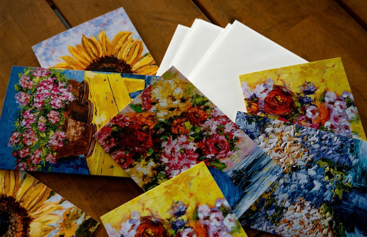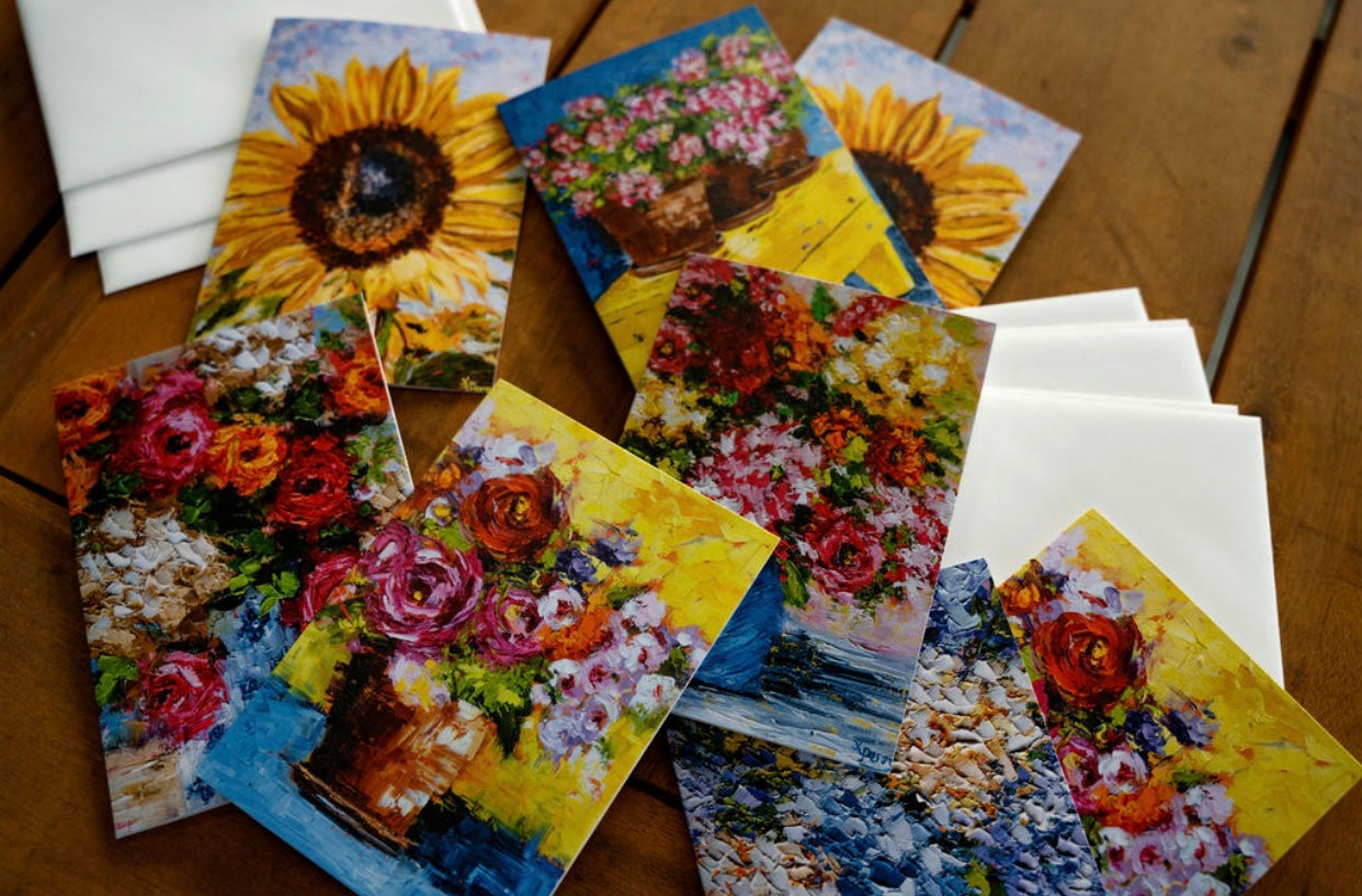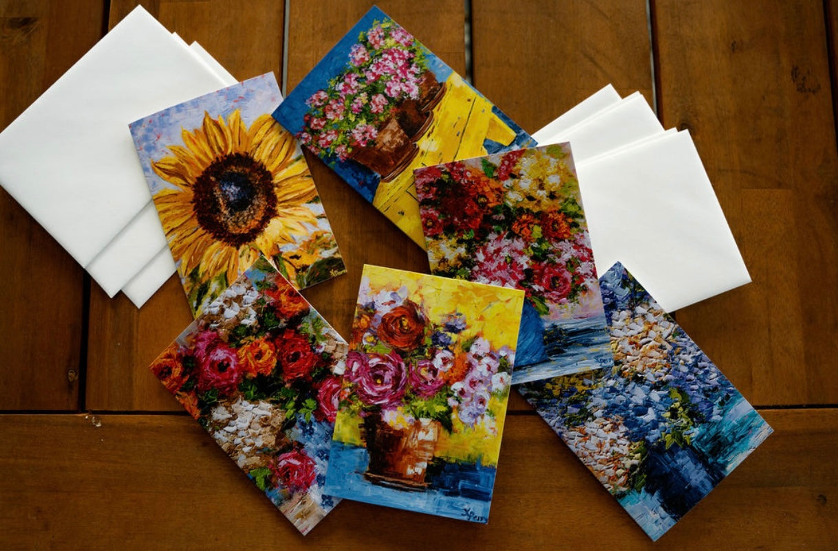 Notecards portray images of original paintings by Kim Perry on the front with the inside being blank for you to personalize a note to that special someone.