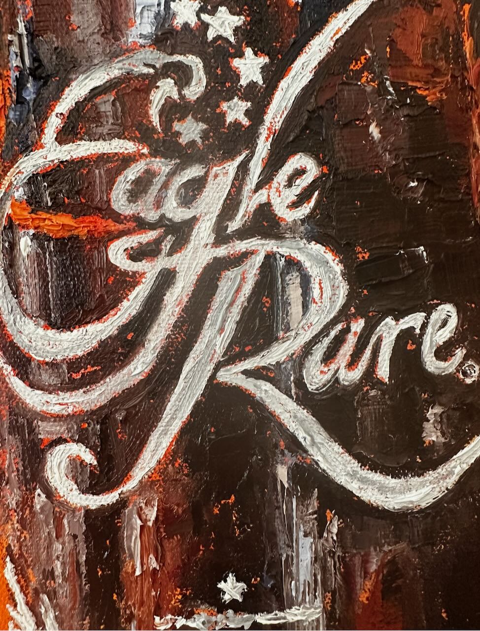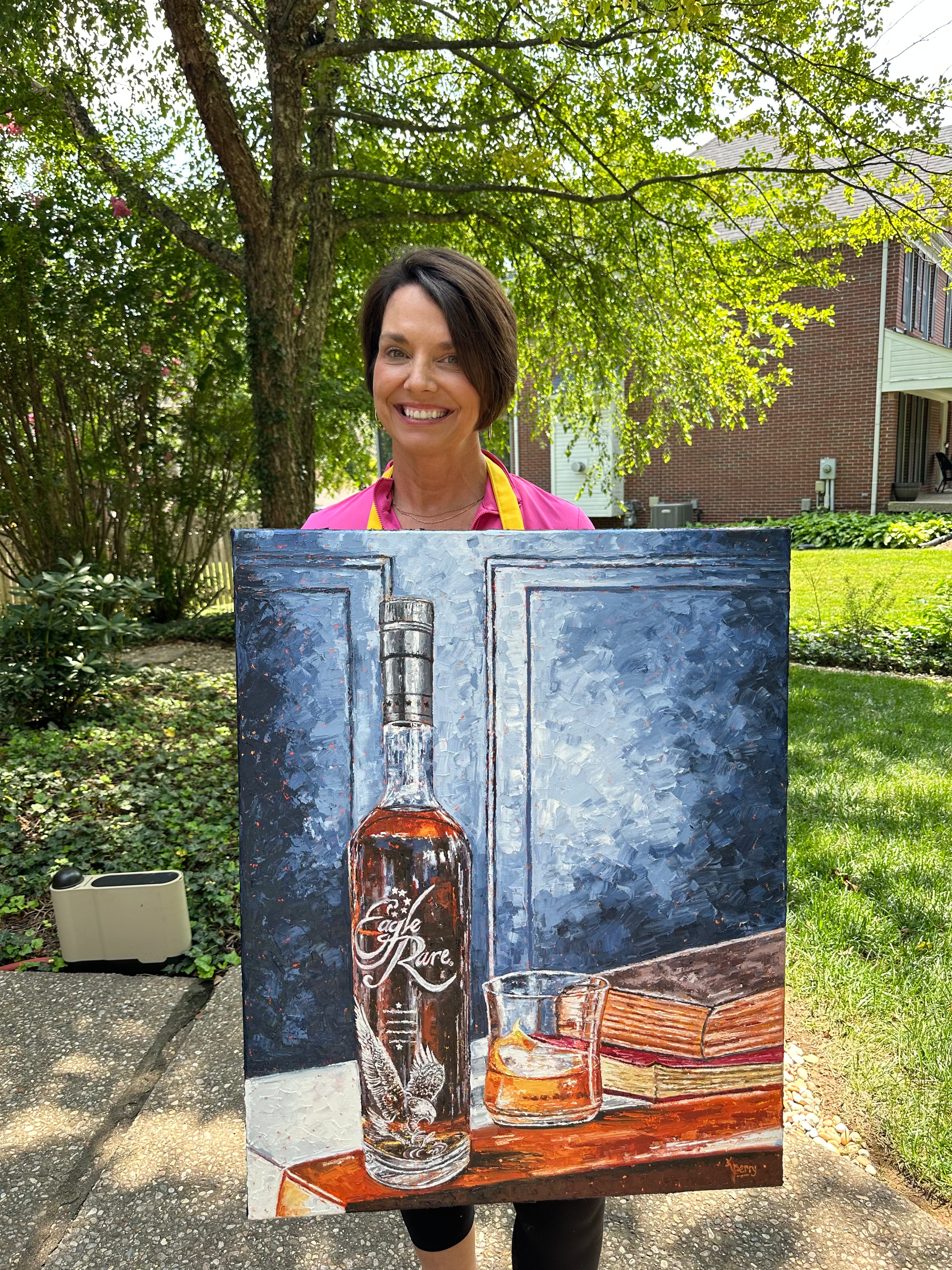 Created and inspired from the recent "Better with Bourbon" collection. 95% of the world's bourbon is produced right in the heart of Kentucky. Kim captures the artistry, the craftsmanship, and the legacy of each bottle by the unique palette knife technique using bold, intense colors.