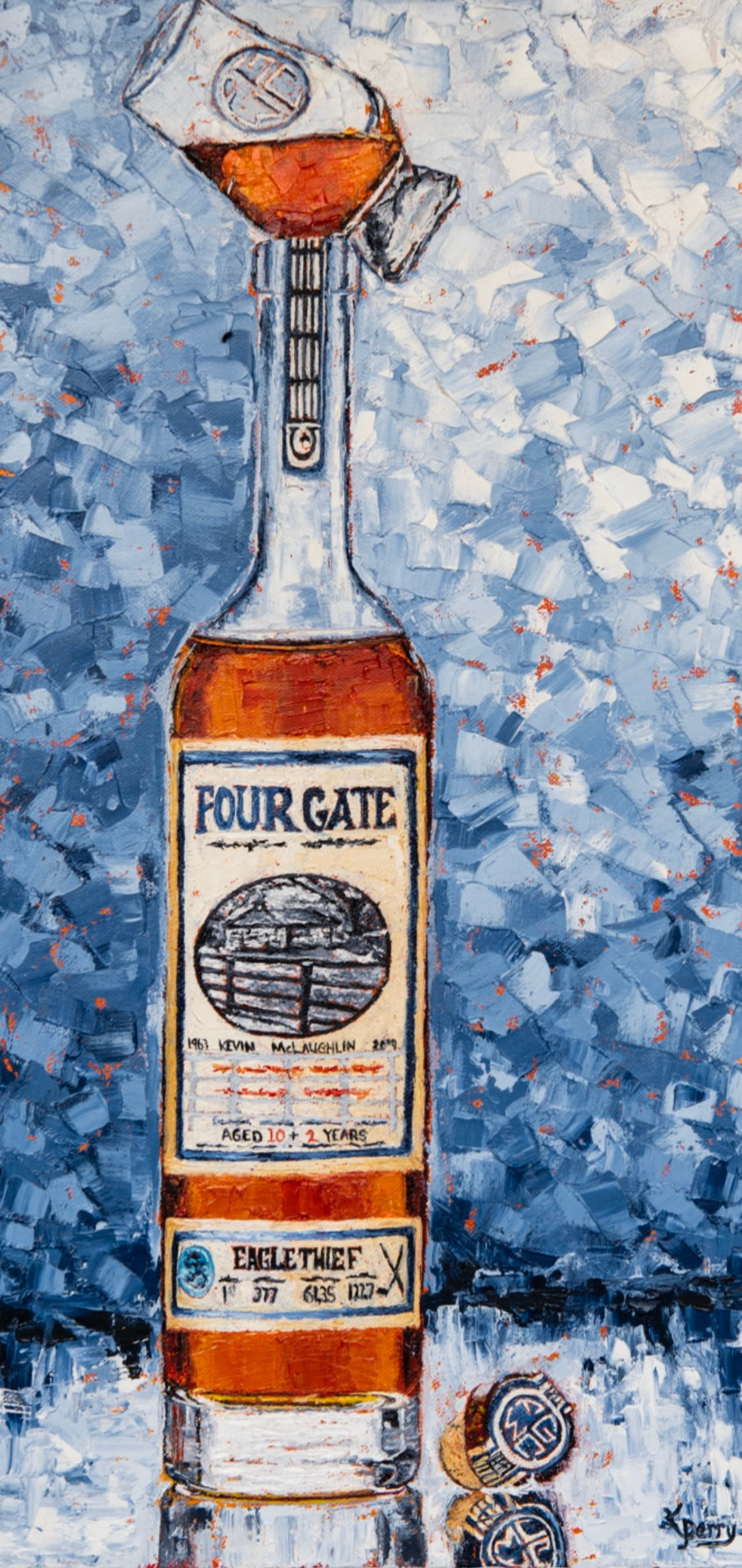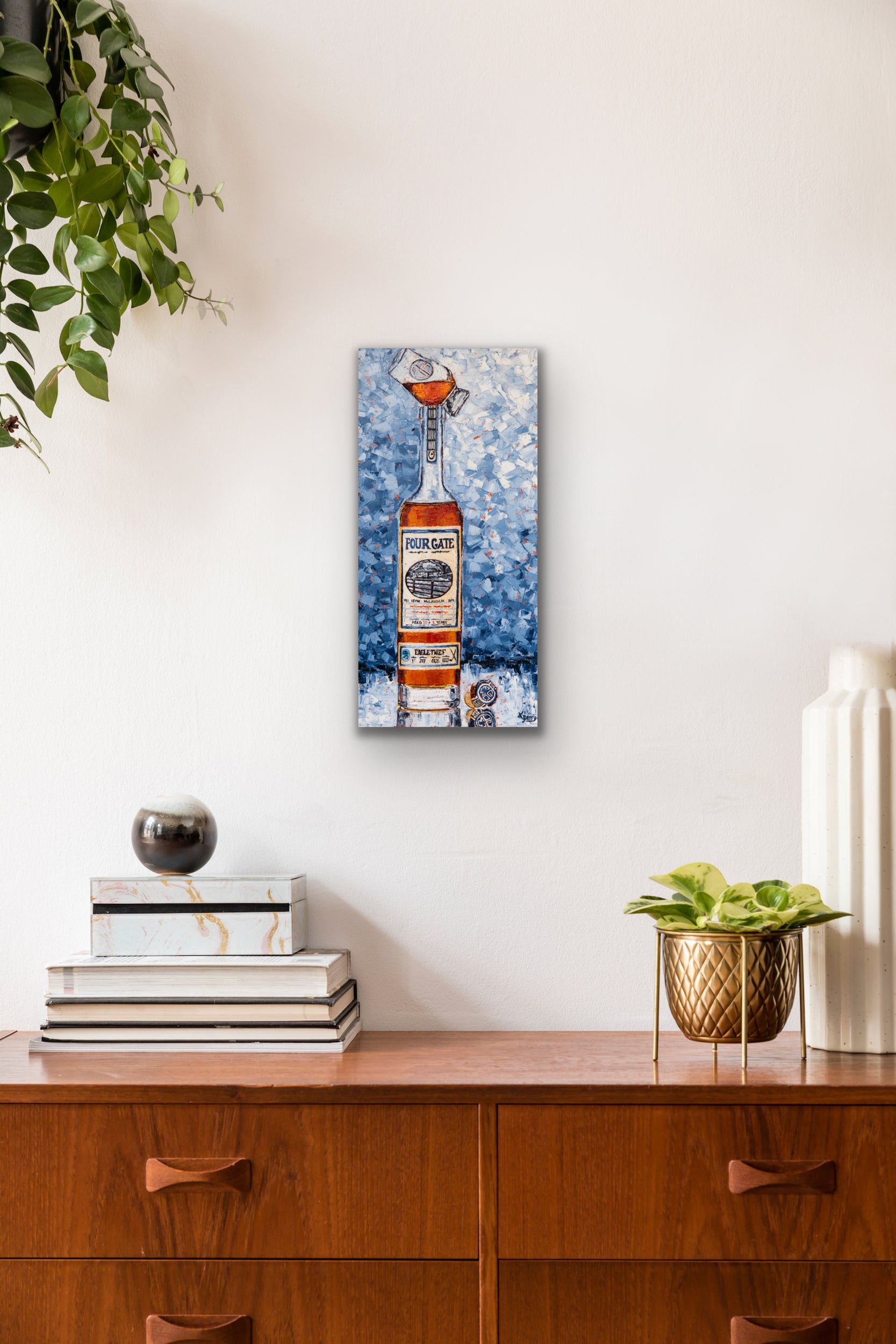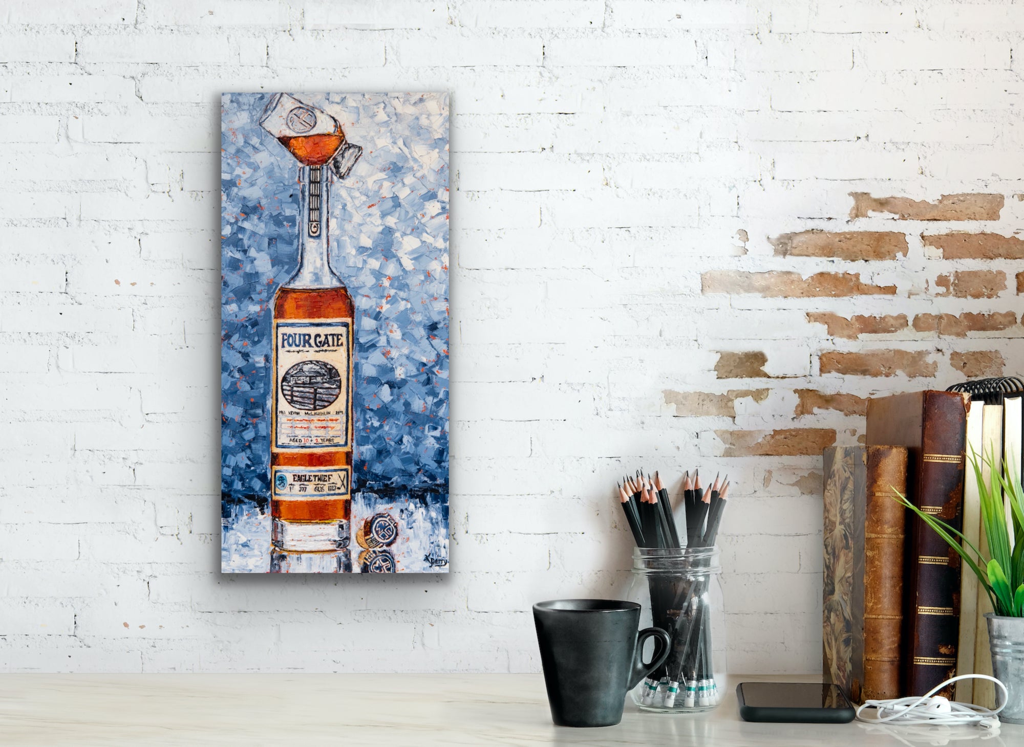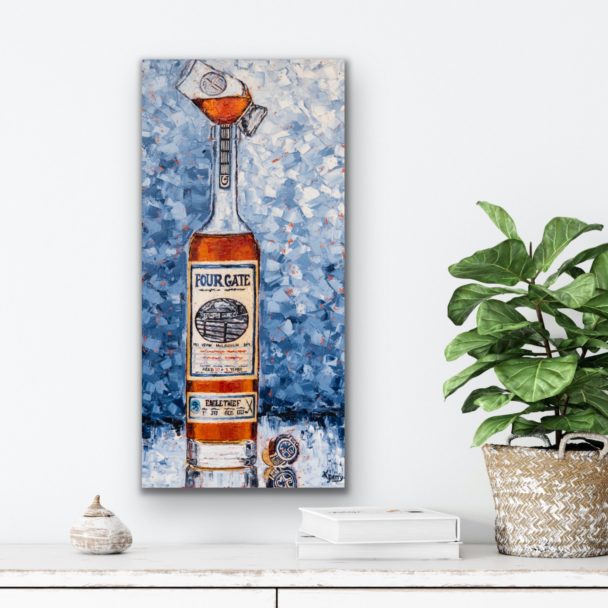 Created and inspired from the recent "Better with Bourbon" collection.  95% of the world's bourbon is produced right in the heart of Kentucky.  Kim captures the artistry, the craftsmanship, and the legacy of each bottle by the unique palette knife technique using bold, intense colors.