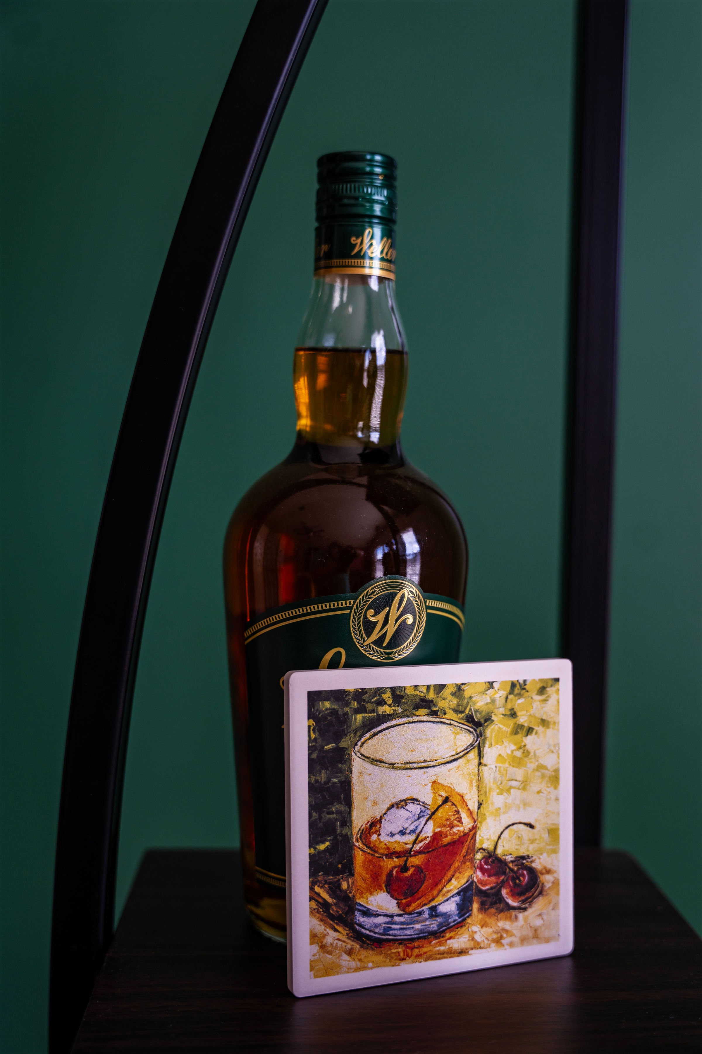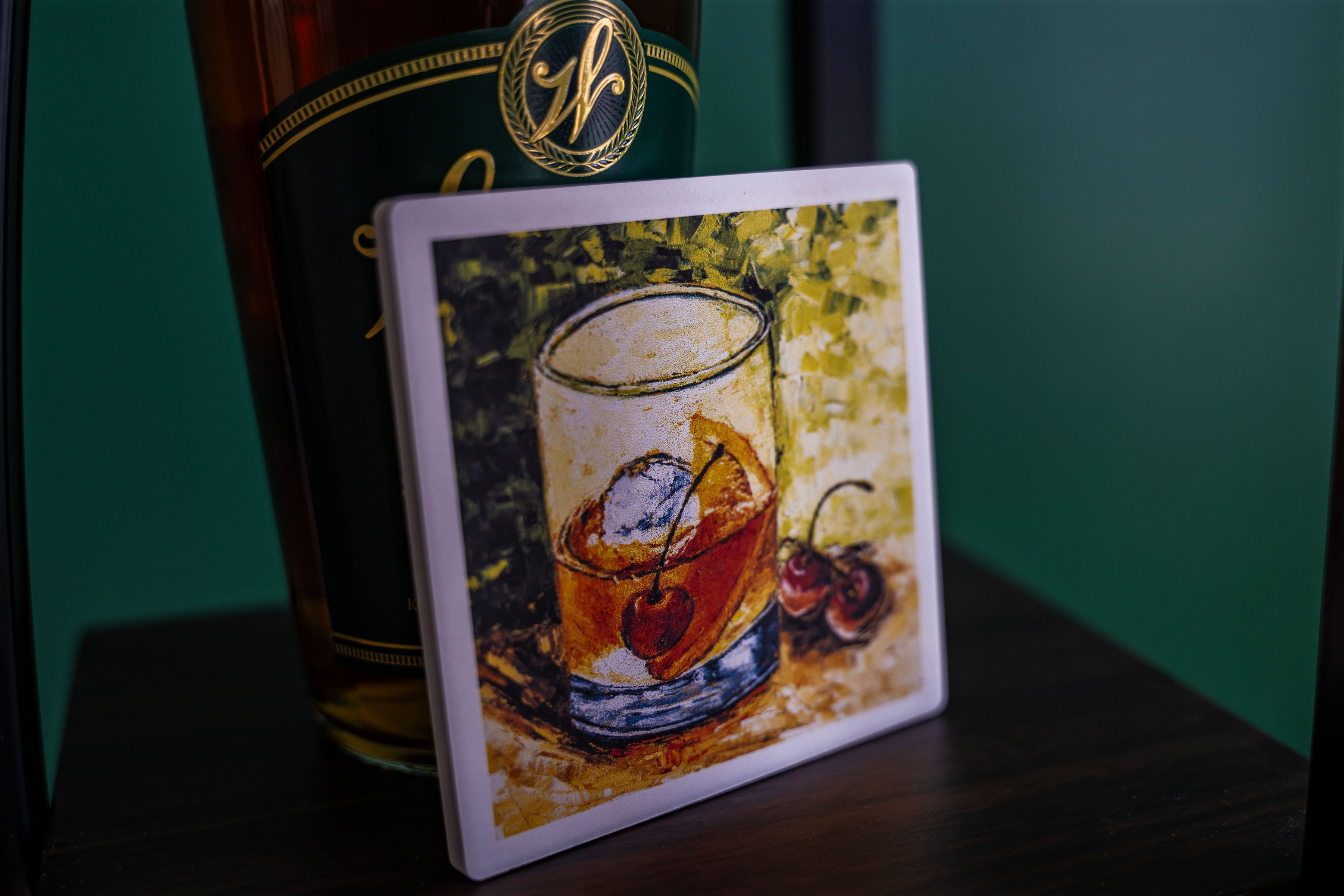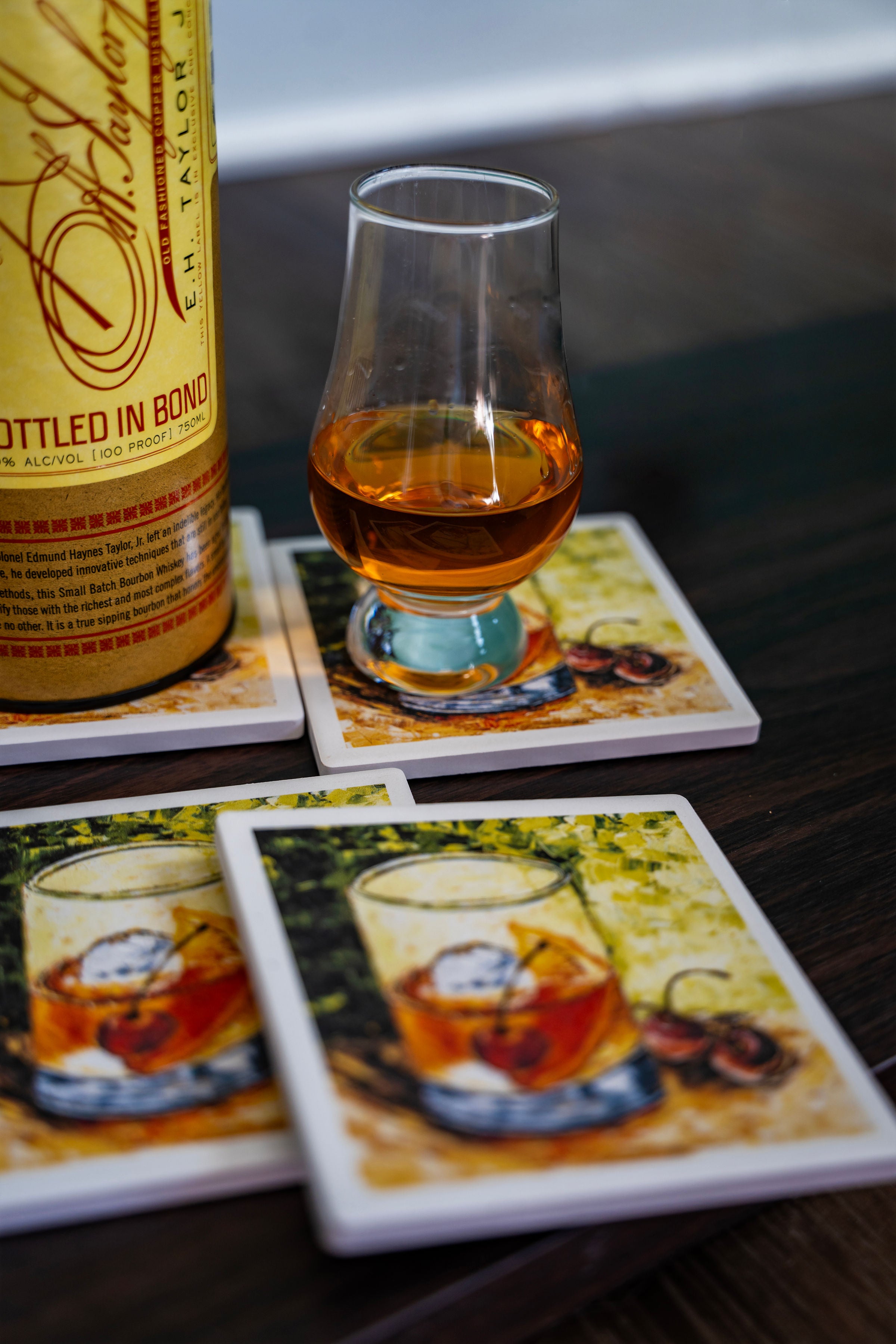 Welcome to my collection of stone coasters featuring exquisite paintings of "Let's Toast!" and "Just a Little Old Fashioned." These coasters are the perfect addition to any home bar or whiskey enthusiast's collection. Each coaster showcases a unique and stunning painting inspired by the rich and vibrant world of bourbon.