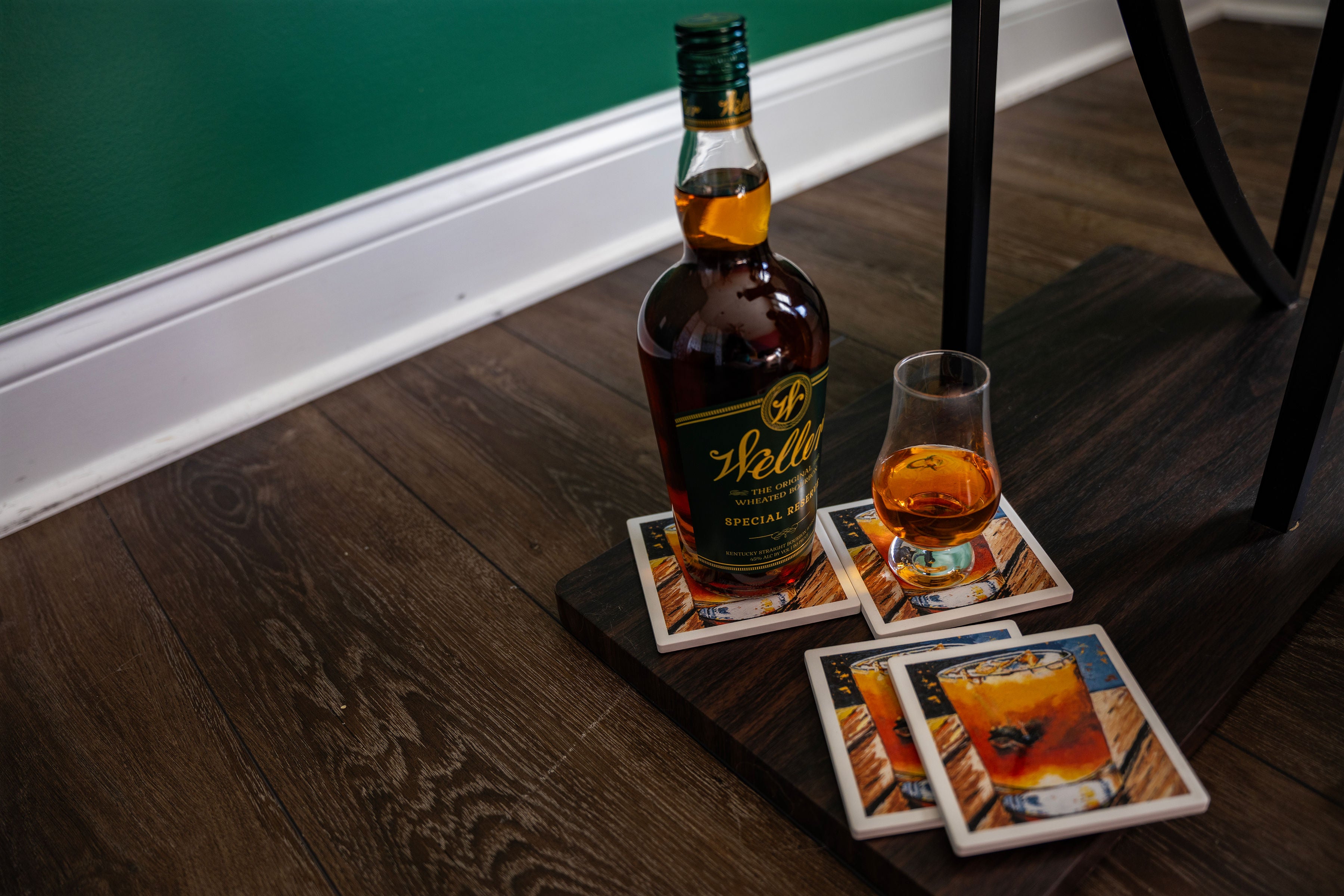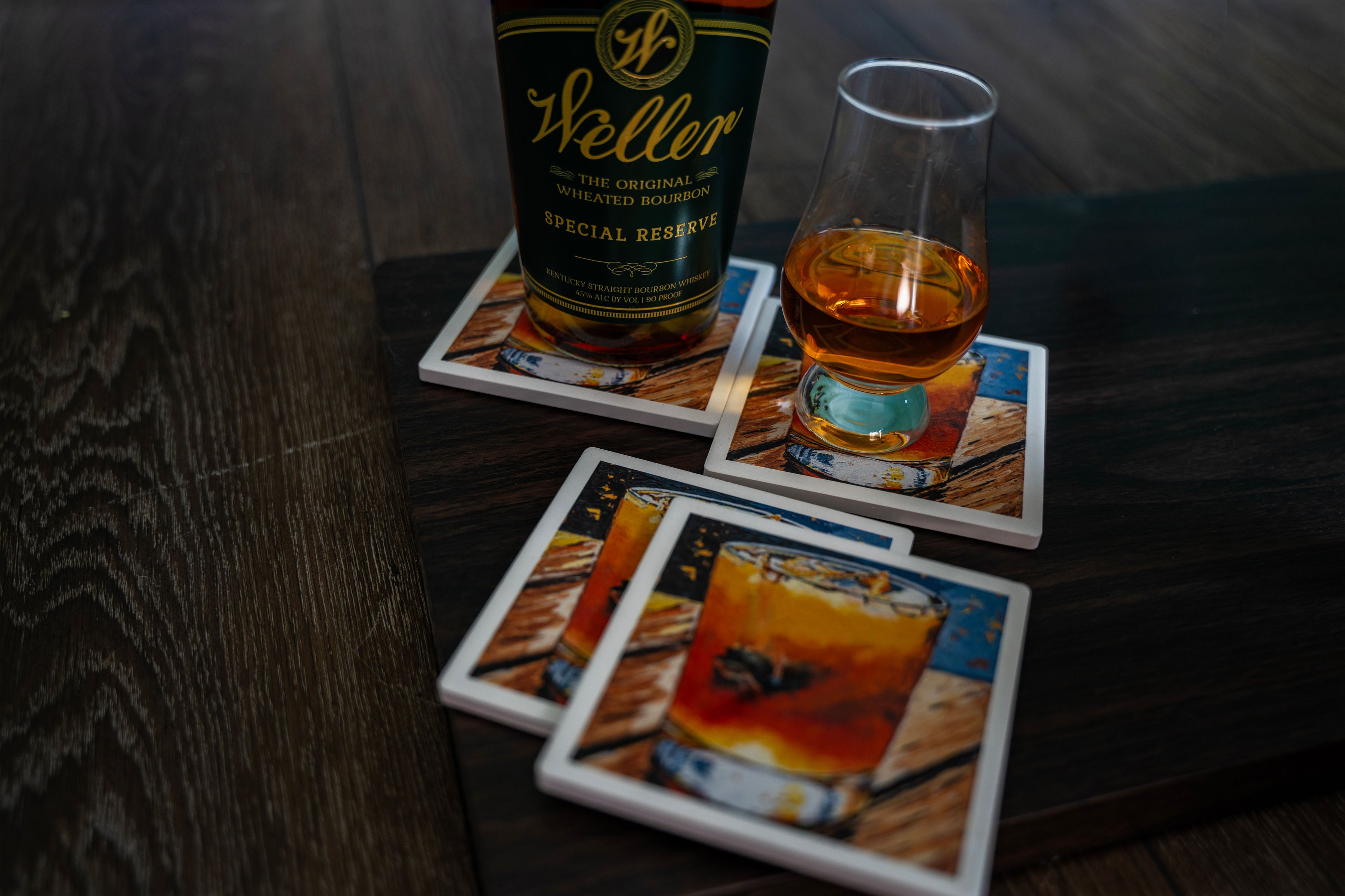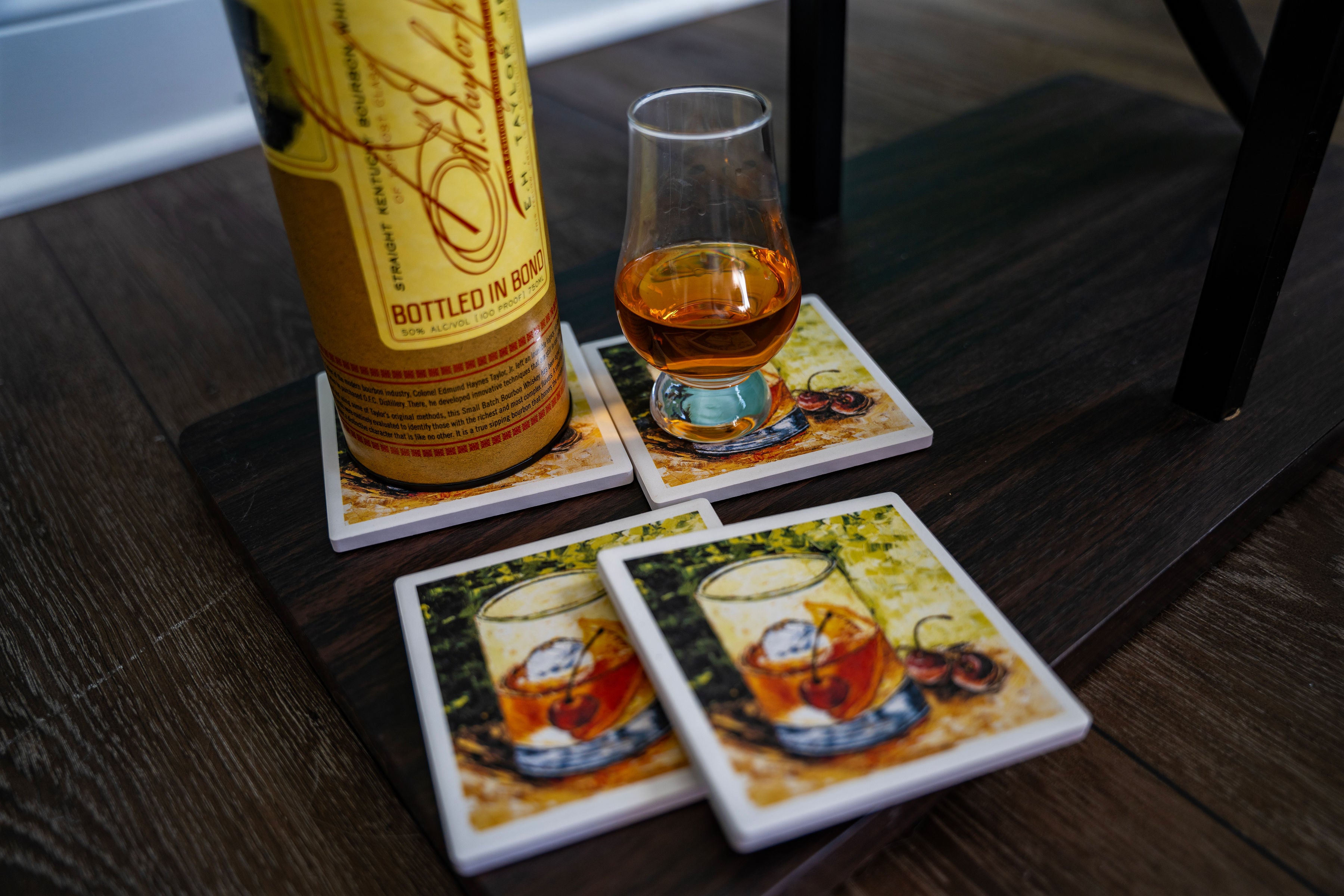 Welcome to my collection of stone coasters featuring exquisite paintings of "Let's Toast!" and "Just a Little Old Fashioned." These coasters are the perfect addition to any home bar or whiskey enthusiast's collection. Each coaster showcases a unique and stunning painting inspired by the rich and vibrant world of bourbon.