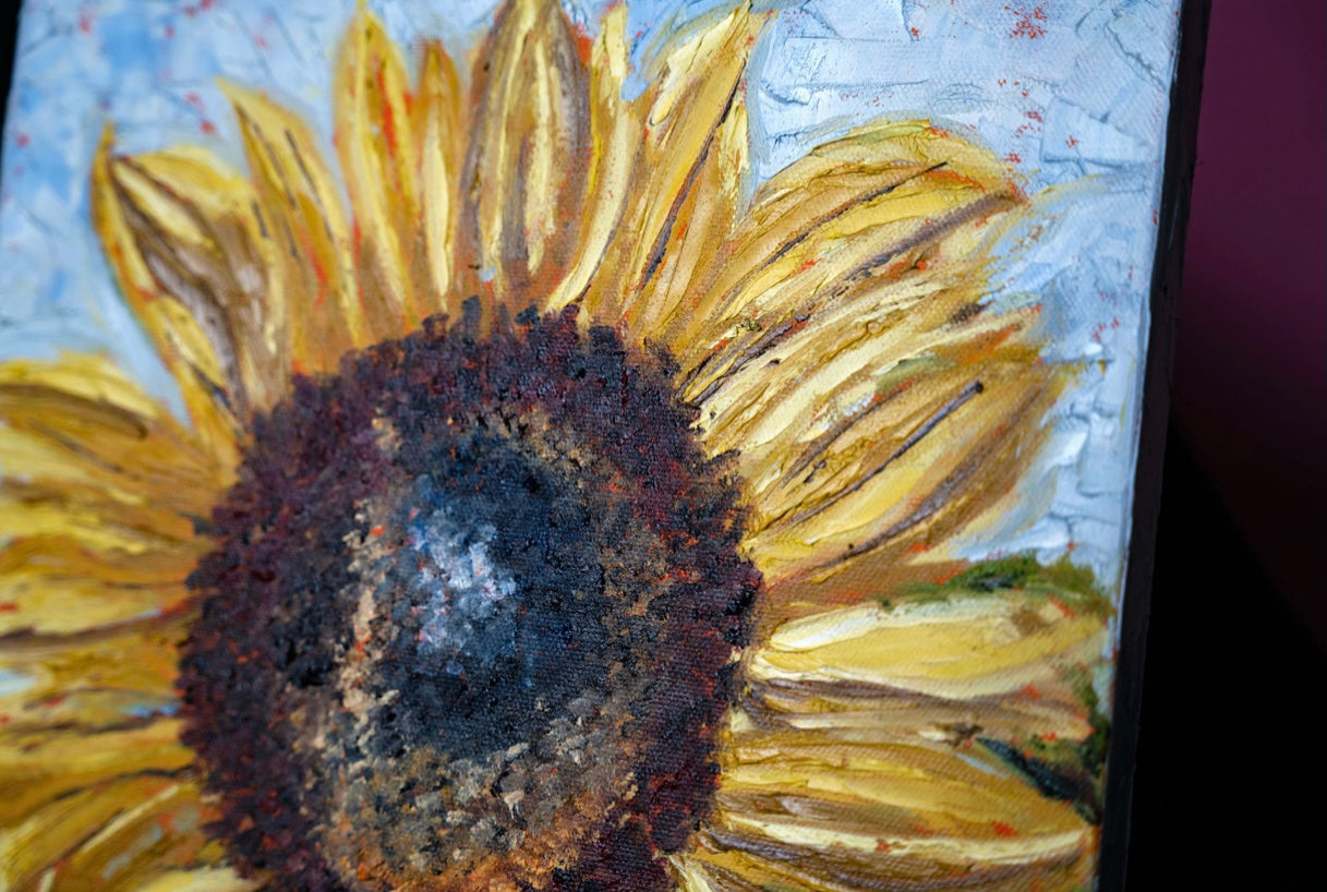 Created from the heart using a unique palette knife technique with the use of bold, intense colors.