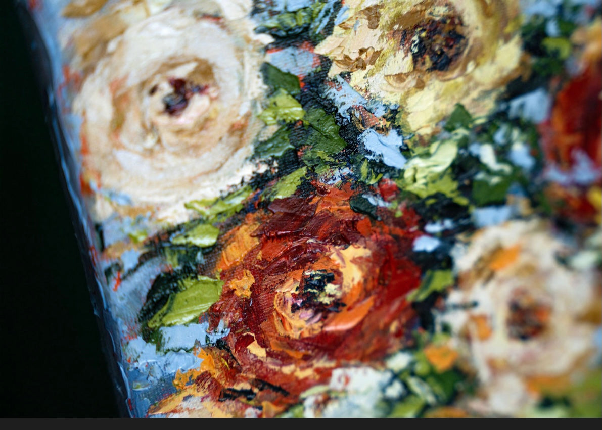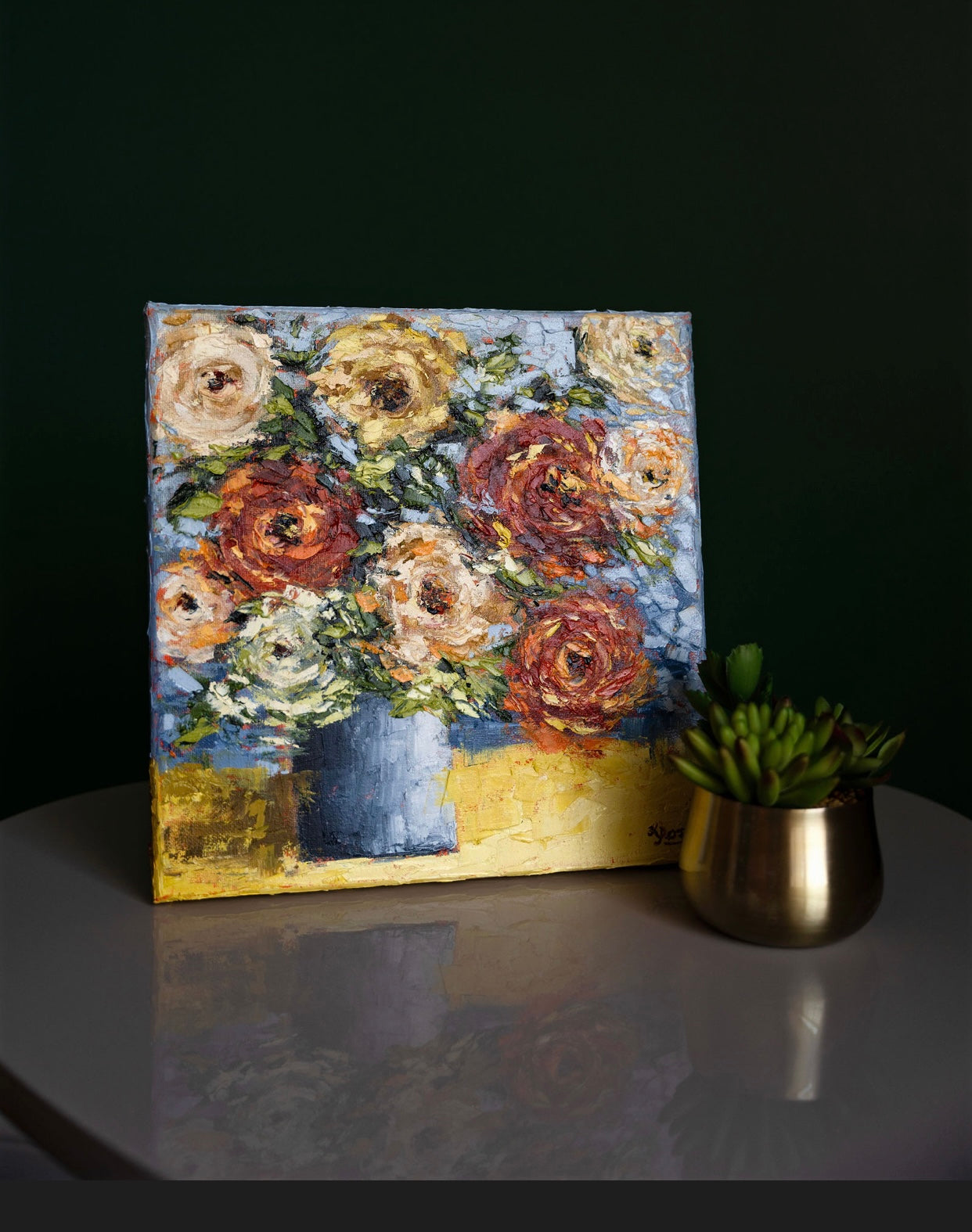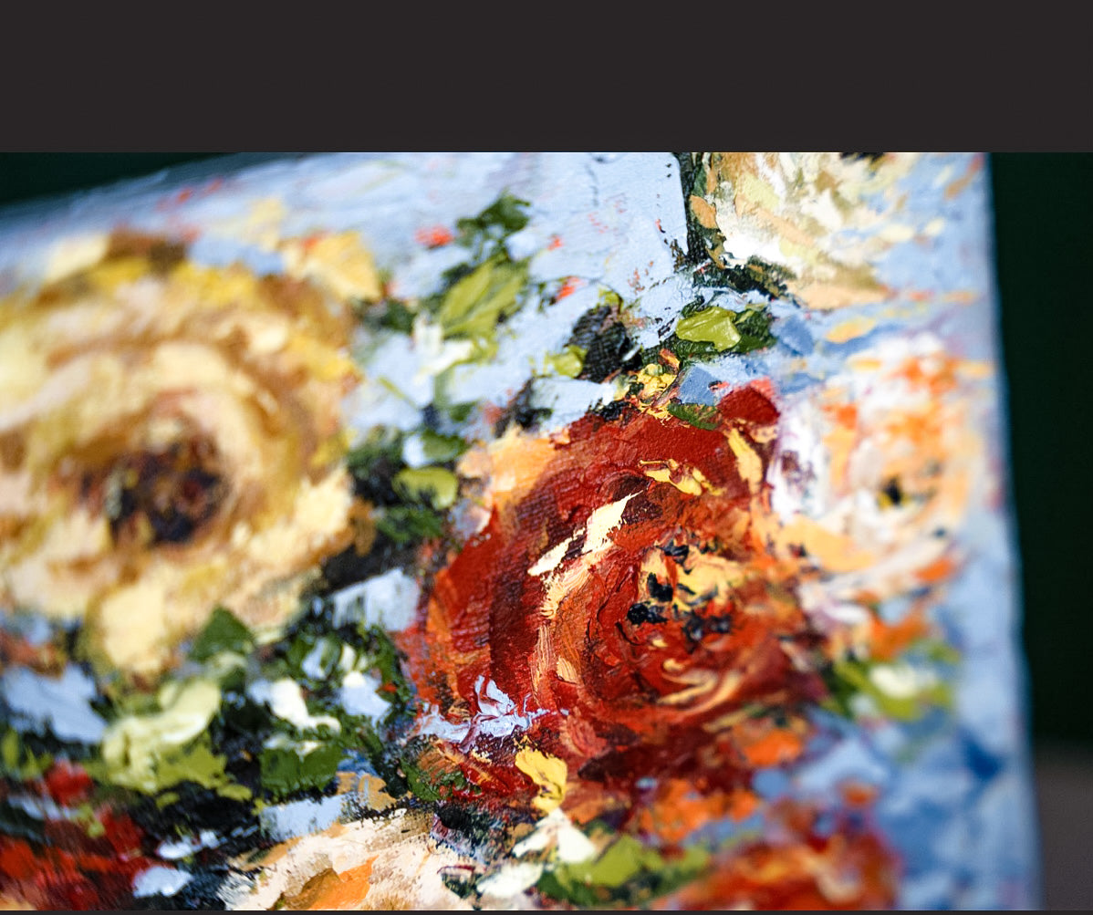 Created from the heart using a unique palette knife technique with the use of bold, intense colors.