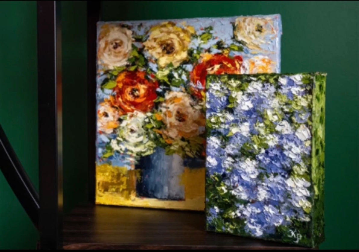 "Morning Into Dancing" was inspired by the new floral series - "Priscilla's Garden". These new original oil paintings were inspired by the women of Priscilla's Place, a beautiful organization that gives women a faith based solution for those struggling with addiction.