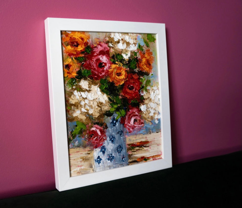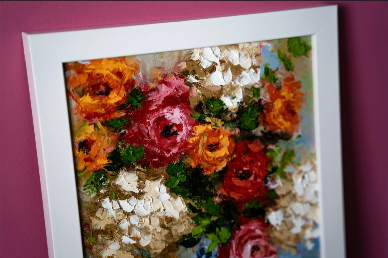 Created from the heart using a unique palette knife technique with the use of bold, intense colors.