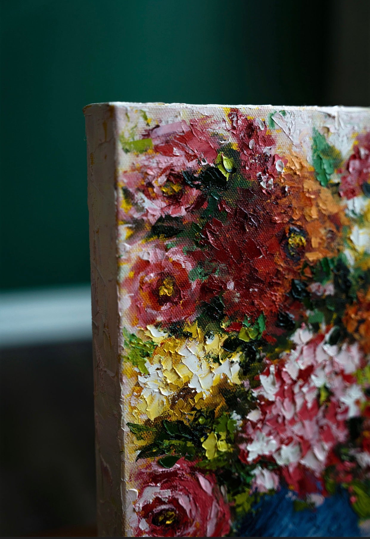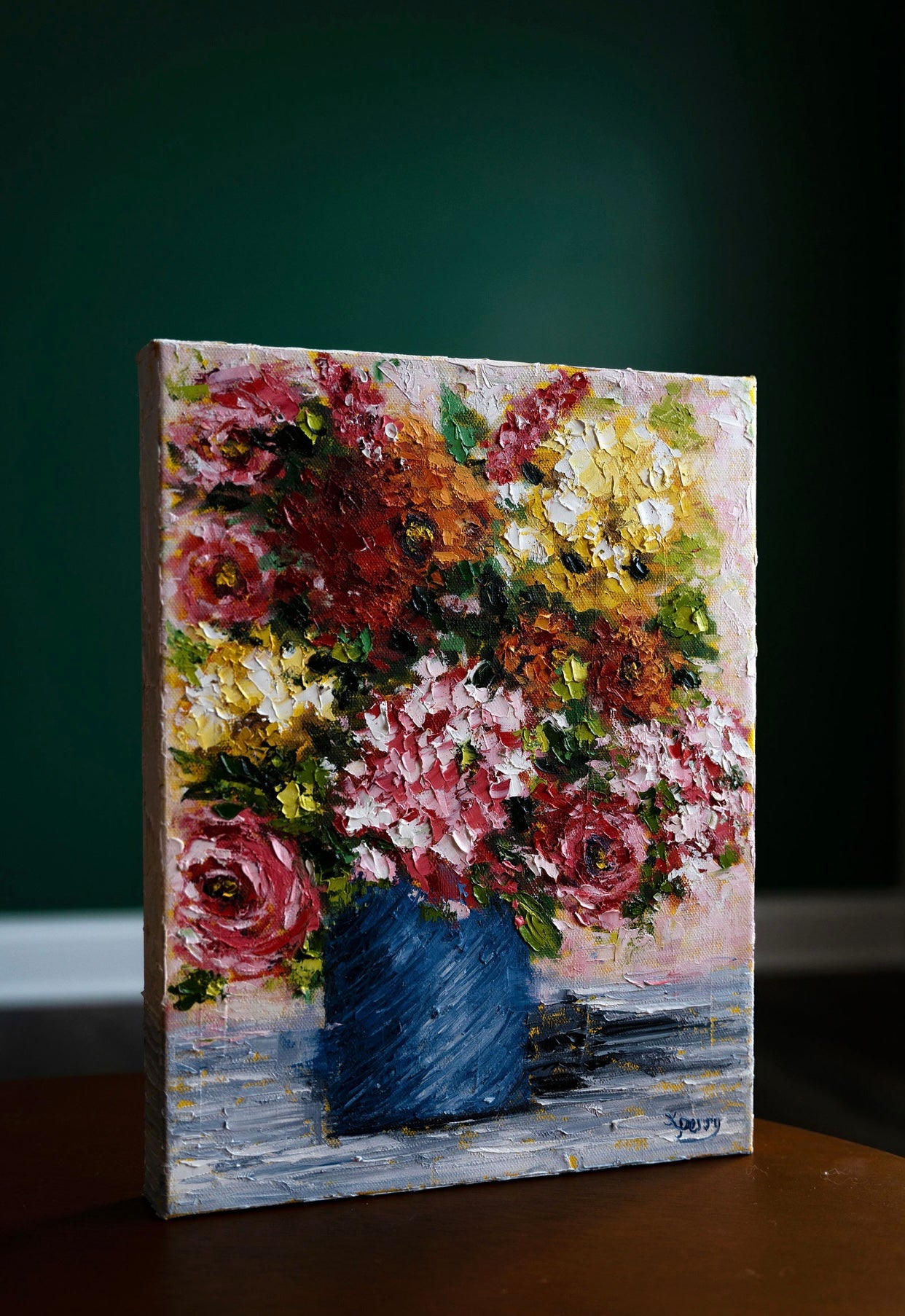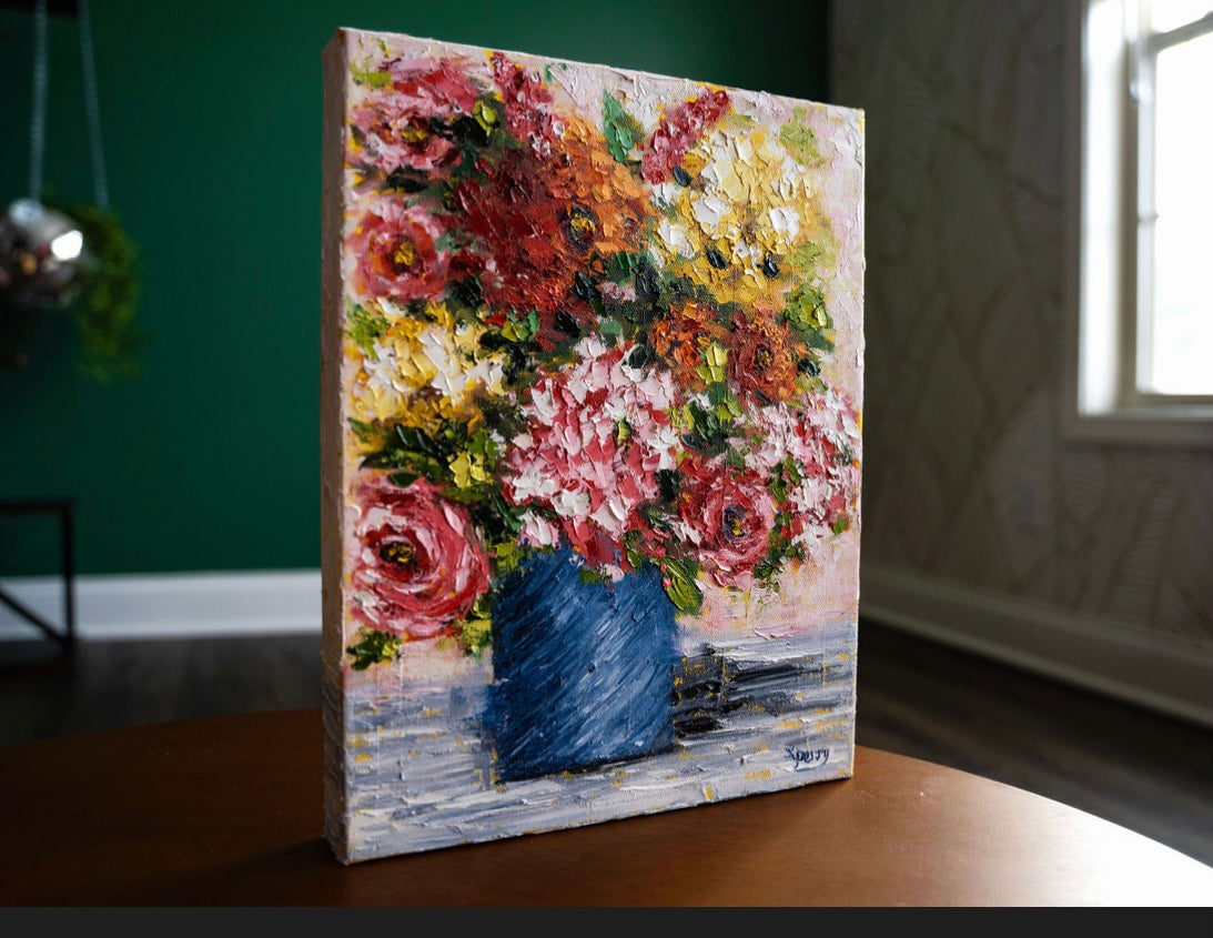 Created from the heart using a unique palette knife technique with the use of bold, intense colors.